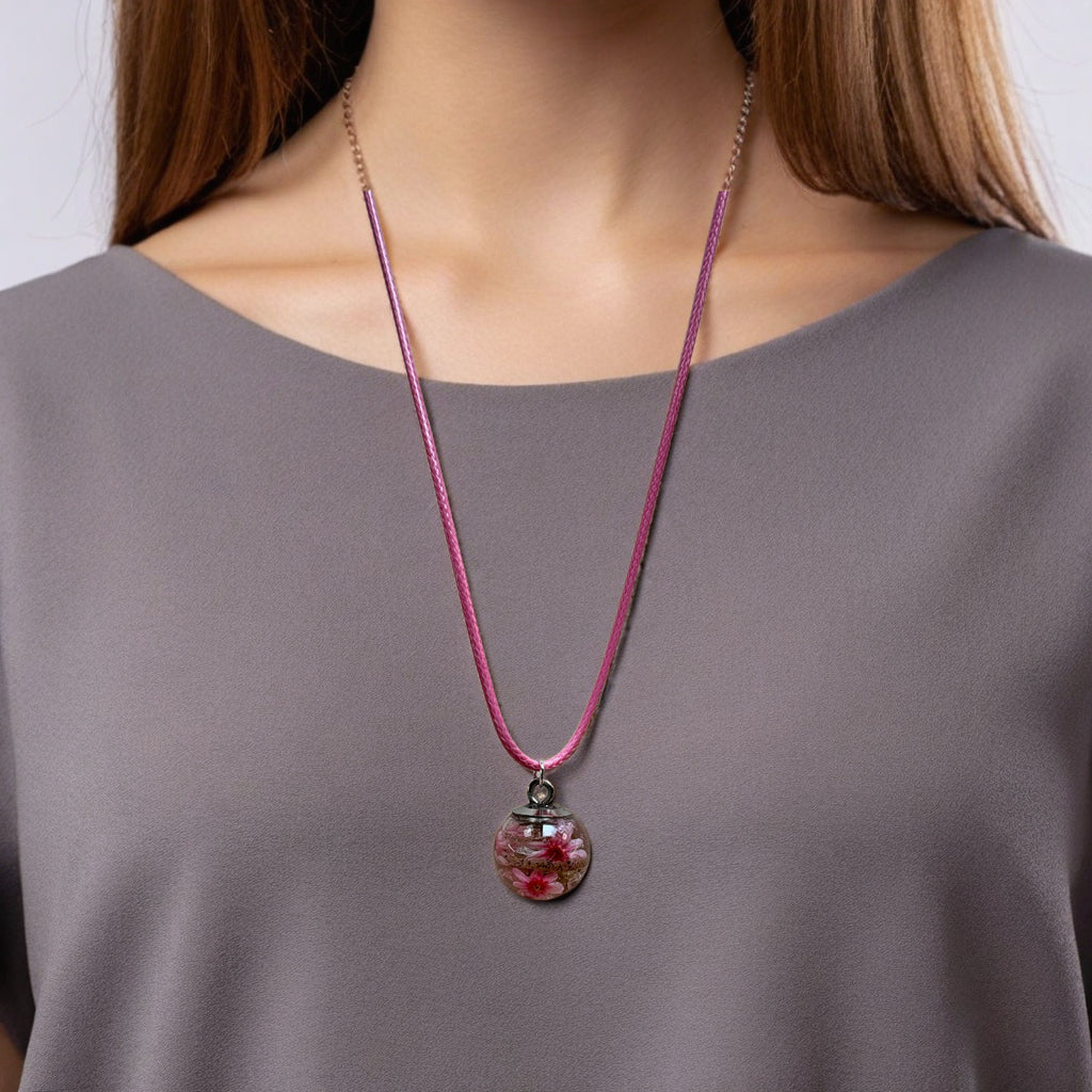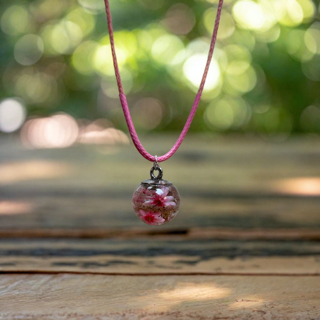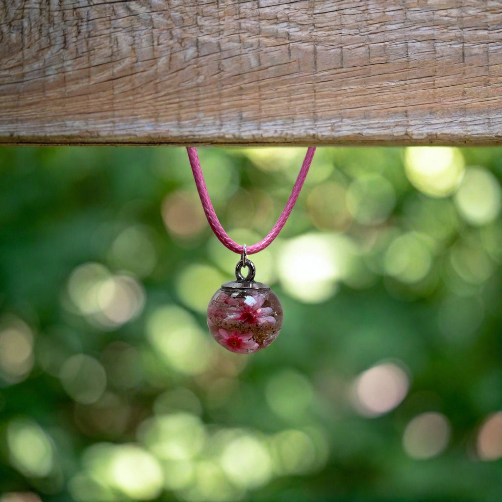 Die Erinnerungsperle ist aus feinem Glas gefertigt und wird von Hand z.B. mit Sand, Asche und Blüten sorgfältig befüllt. Mit ihrer Größe von 1,5 cm wirkt sie dezent und liegt angenehm auf der Haut.