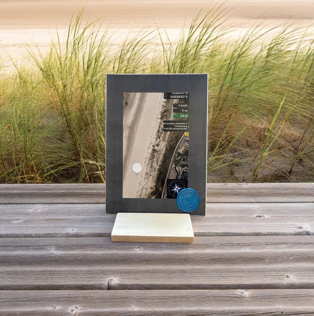 Ihr erhaltet hier, mit Eurem Wunschfarbton für den Hintergrund auf einer schönen Finnpappe ( 480g/qm) DIN A4, eine Karte mit den Koordinaten von der Stelle, von der wir für Euch in die Dünen gegangen sind aber nicht von der genauen Verstreuungsstelle.